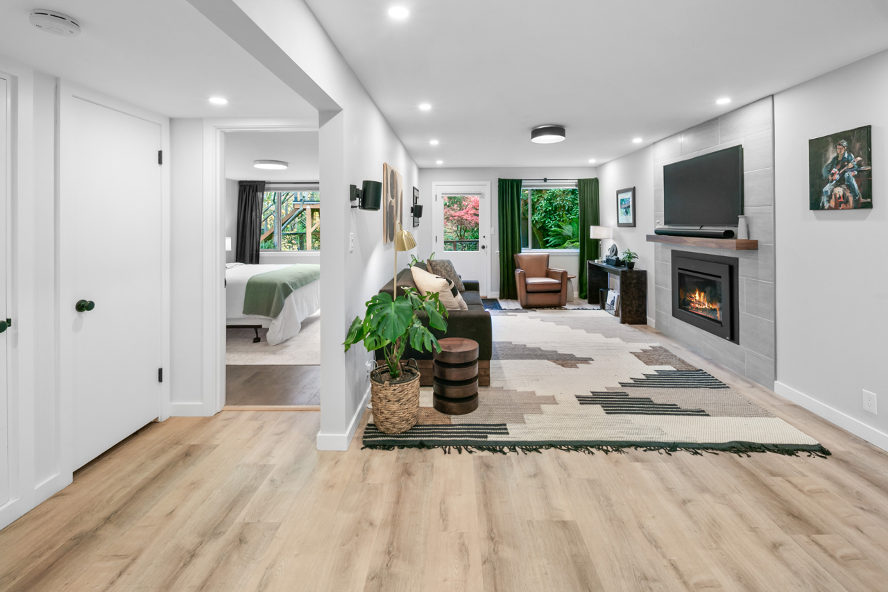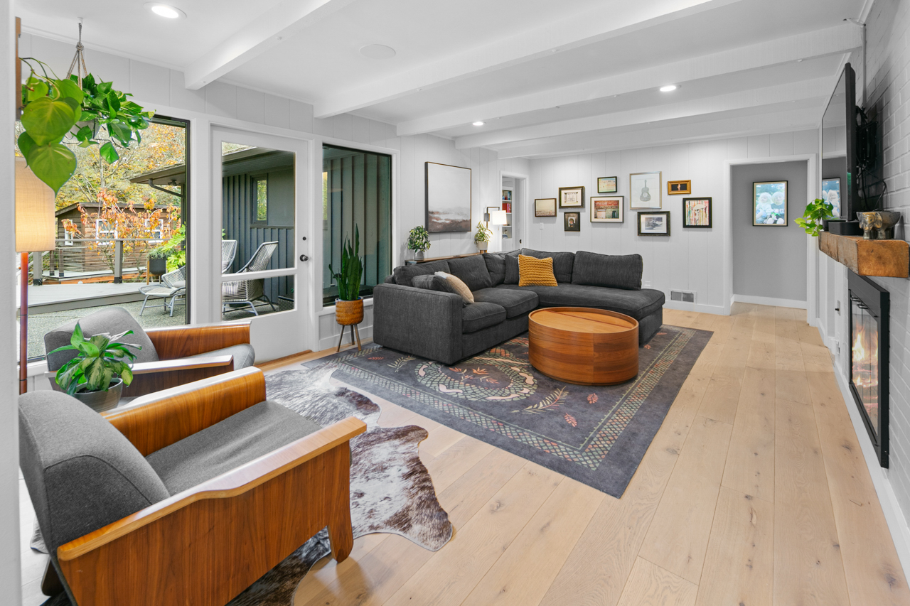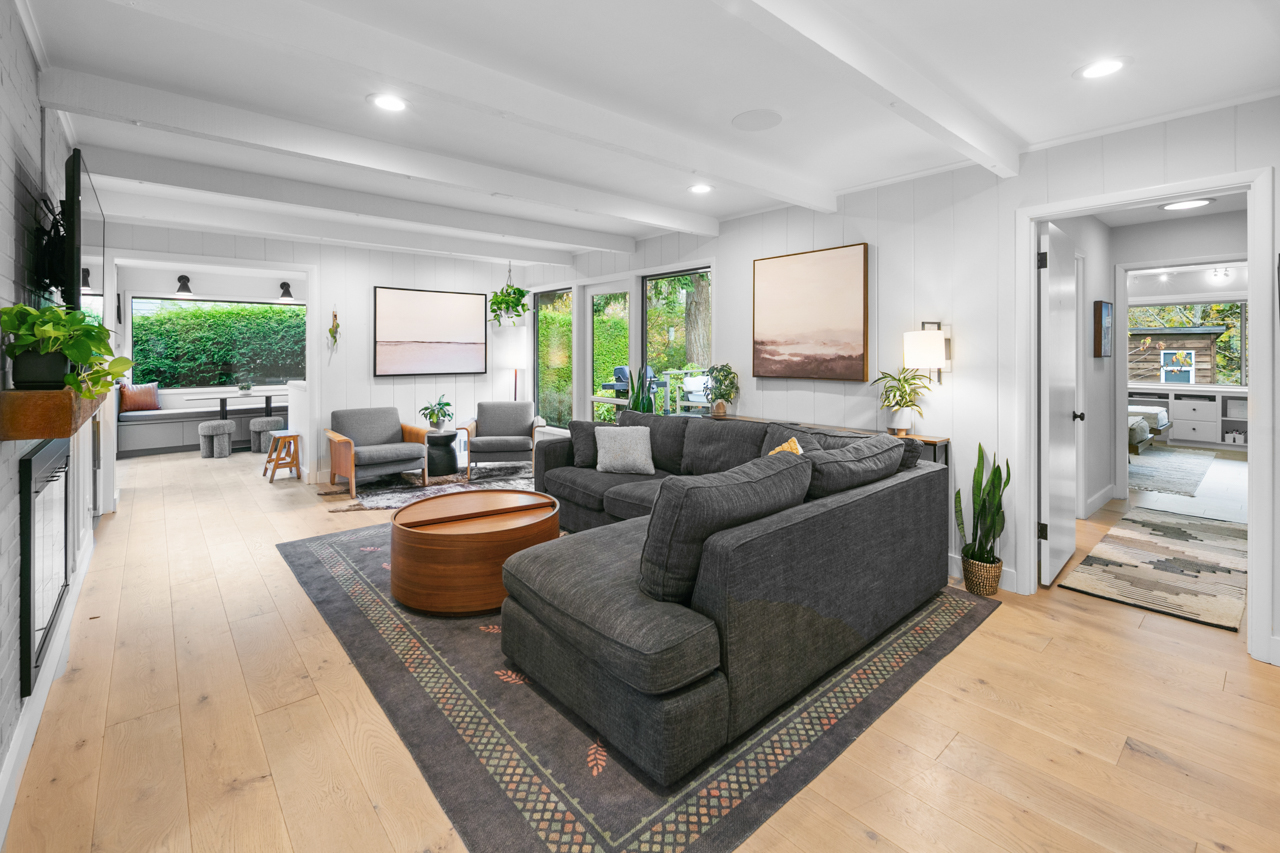 Palm Springs meets Blue Ridge in this stunning MCM remodel! Discover a spacious and inviting home featuring dream living + entertaining spaces, extraordinary design, peek-a-boo views. Create meals in the magazine-quality kitchen with Lacanche cooking, Sub Zero, Quartzite counters, comfy breakfast nook. Such an incredible floorplan: 4 generous bedrooms grace the main level, including a spa-inspired primary suite. Downstairs you’ll find a spacious home gym, rec room, wet bar, and private guest suite. Enjoy the large windows, wide-plank oak hardwoods, 3 fireplaces, built-in audio, huge laundry room, storage. Step outdoors and experience private patios, fenced yard, detached play house overlooking greenbelt. Blue Ridge features private neighborhood amenities: swimming pool, 2 parks, saltwater beach access, tennis, clubhouse, more. This is the one!
